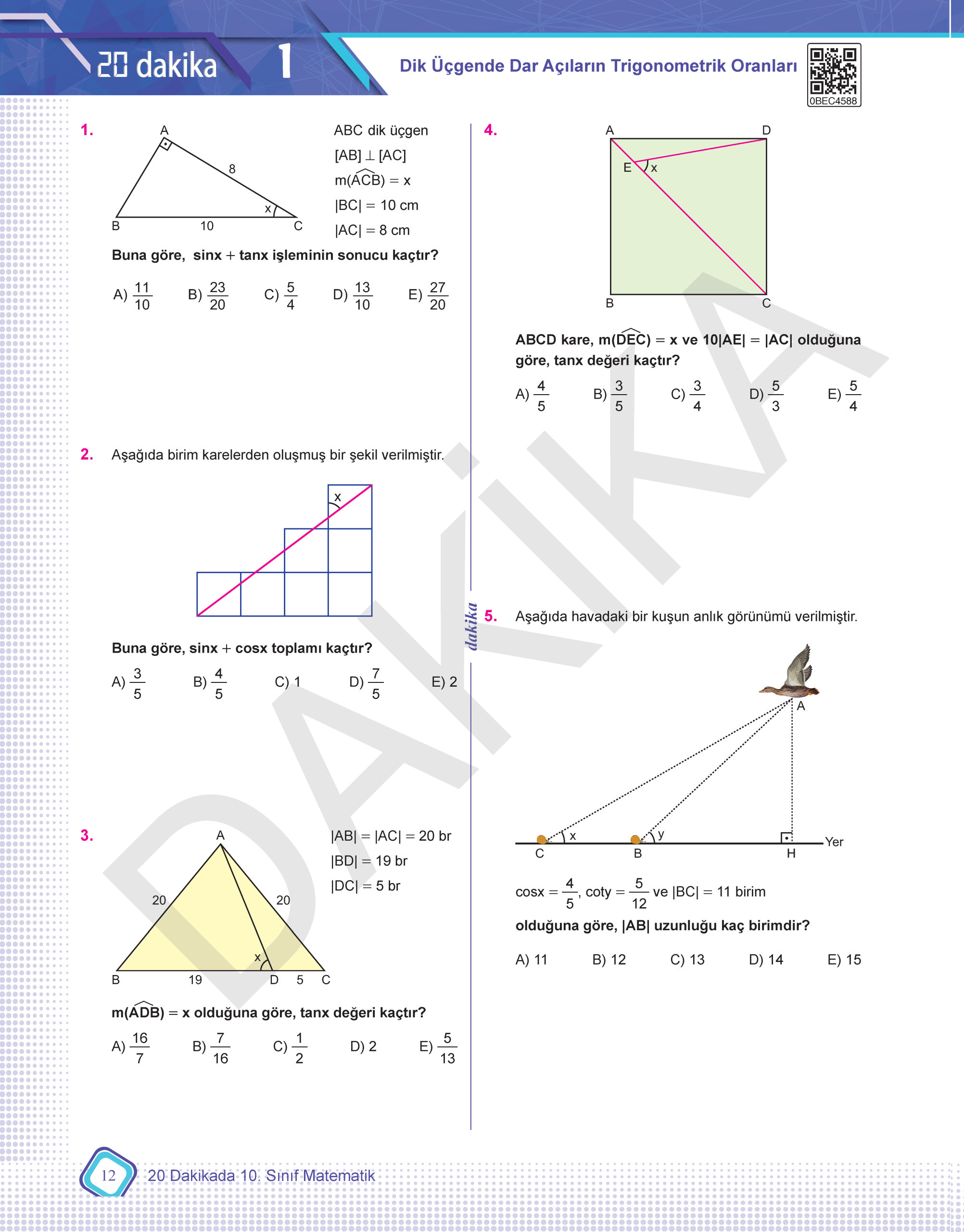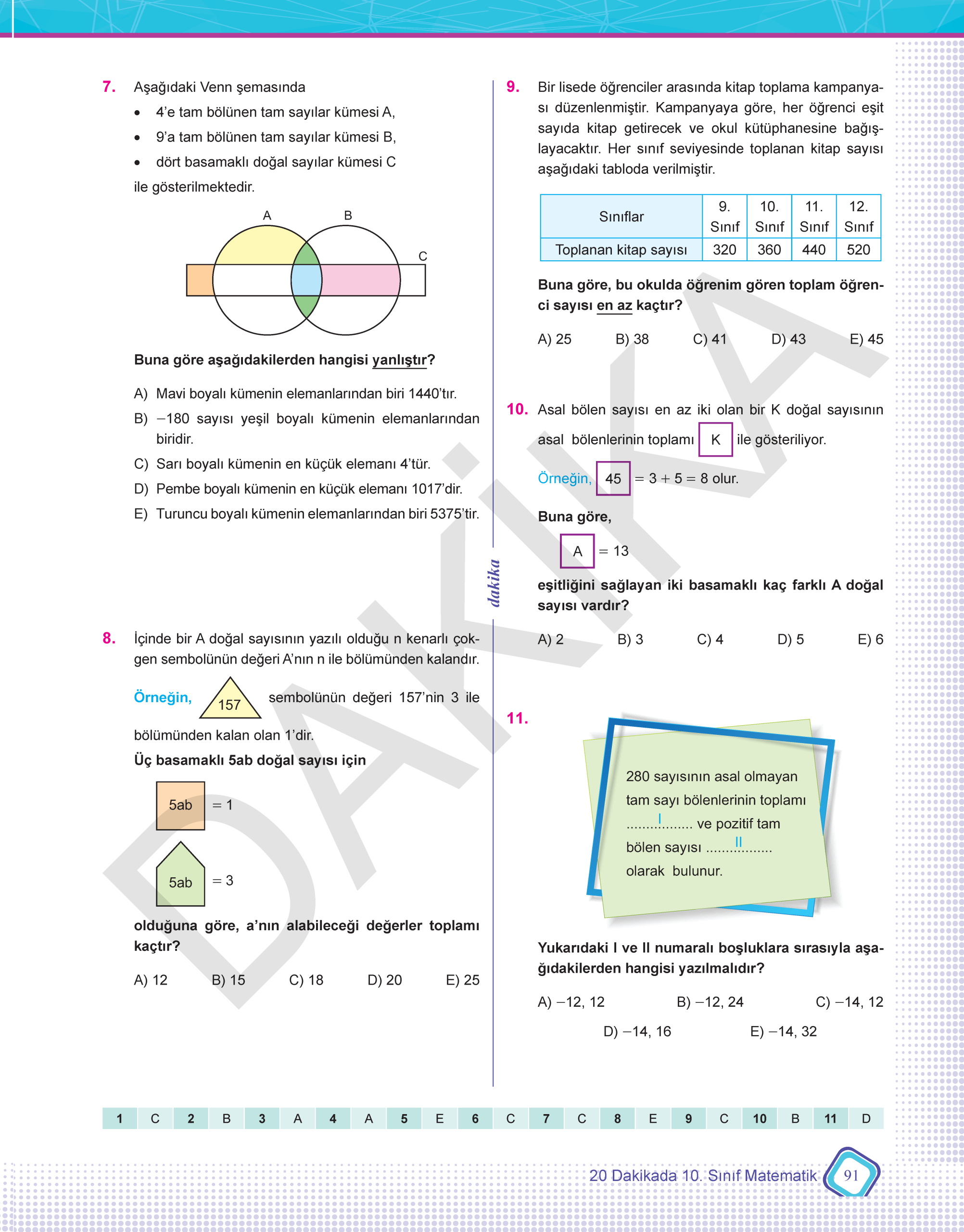 10. SINIF 20 DAKİKADA MATEMATİK KURUMSAL SORU BANKASI