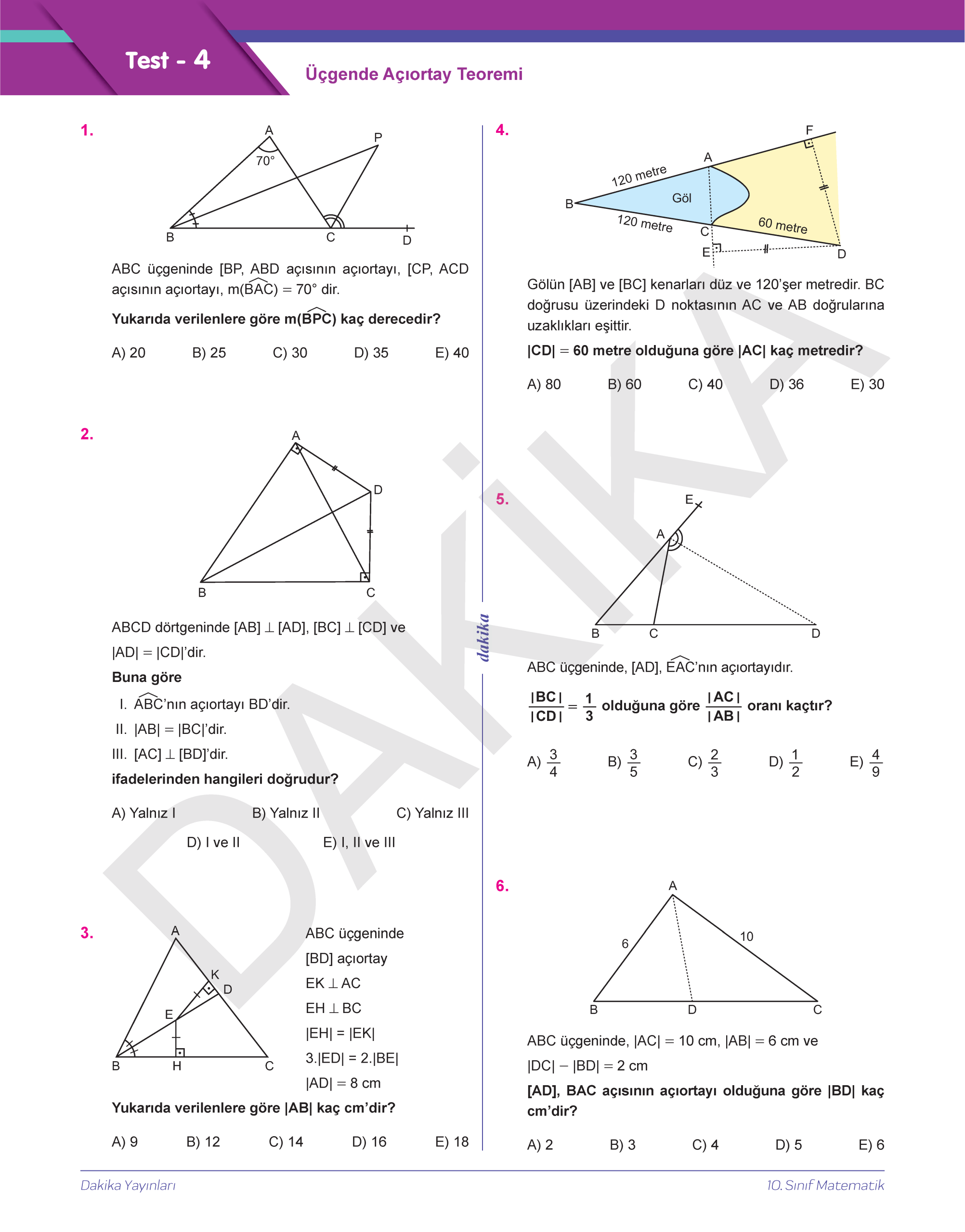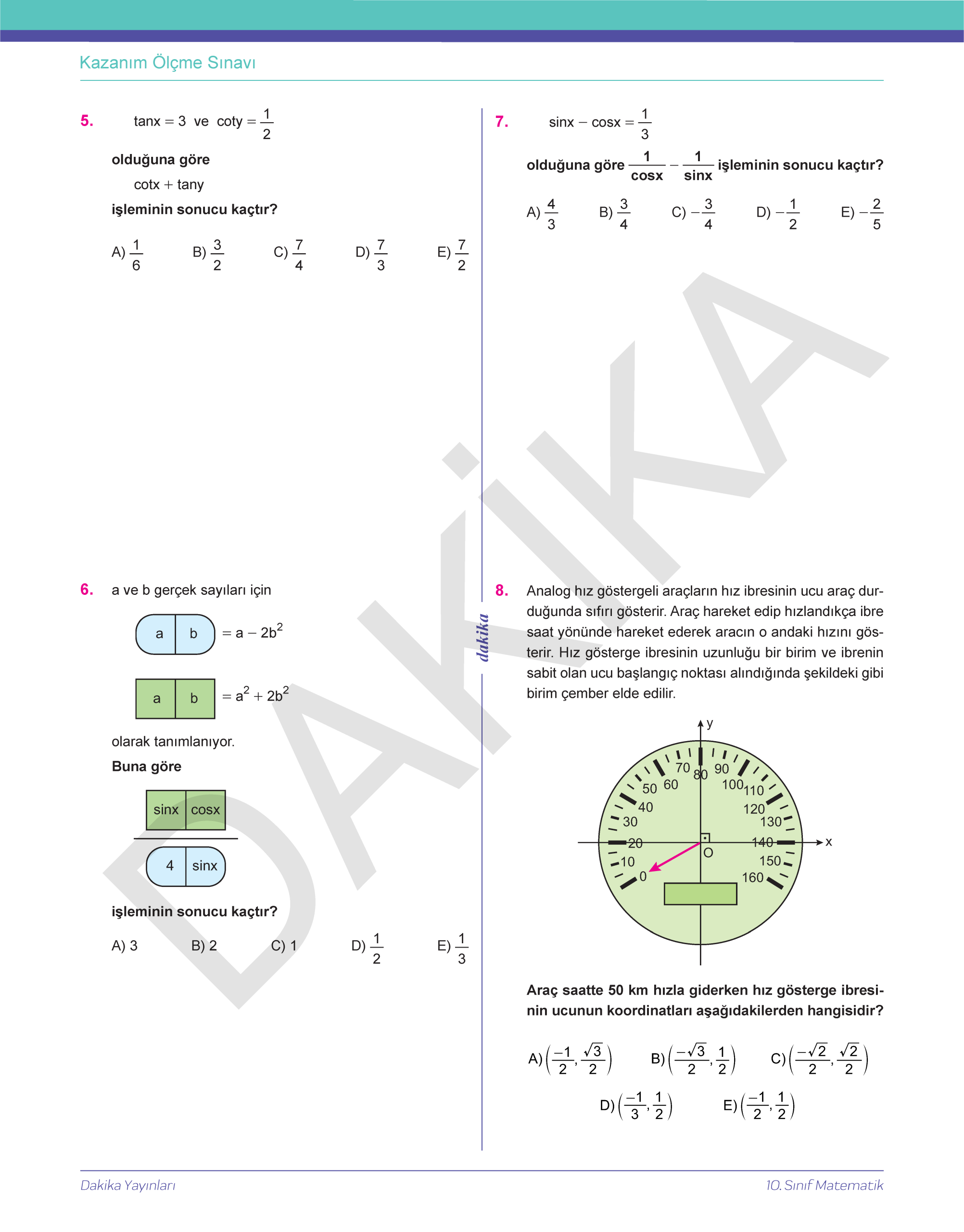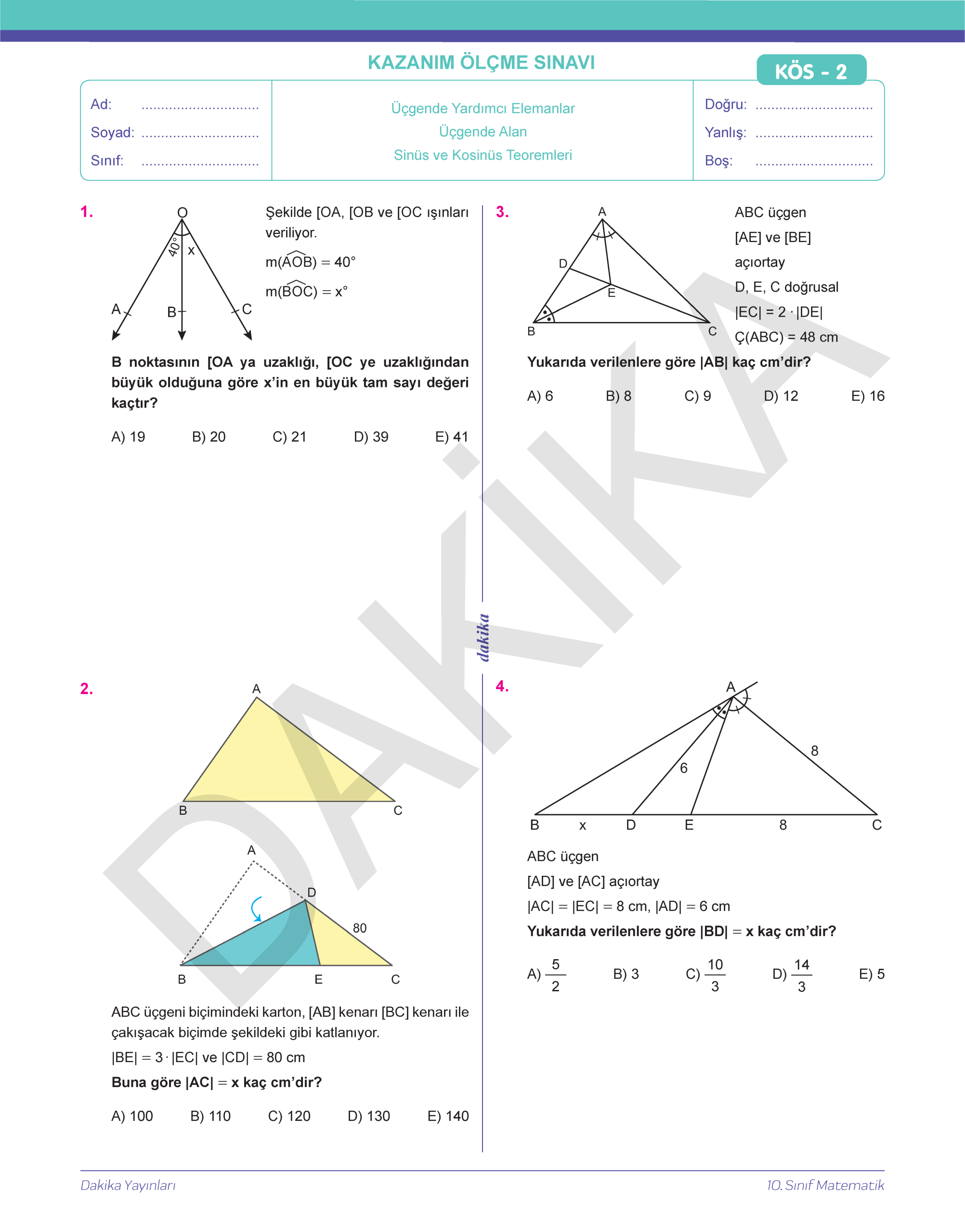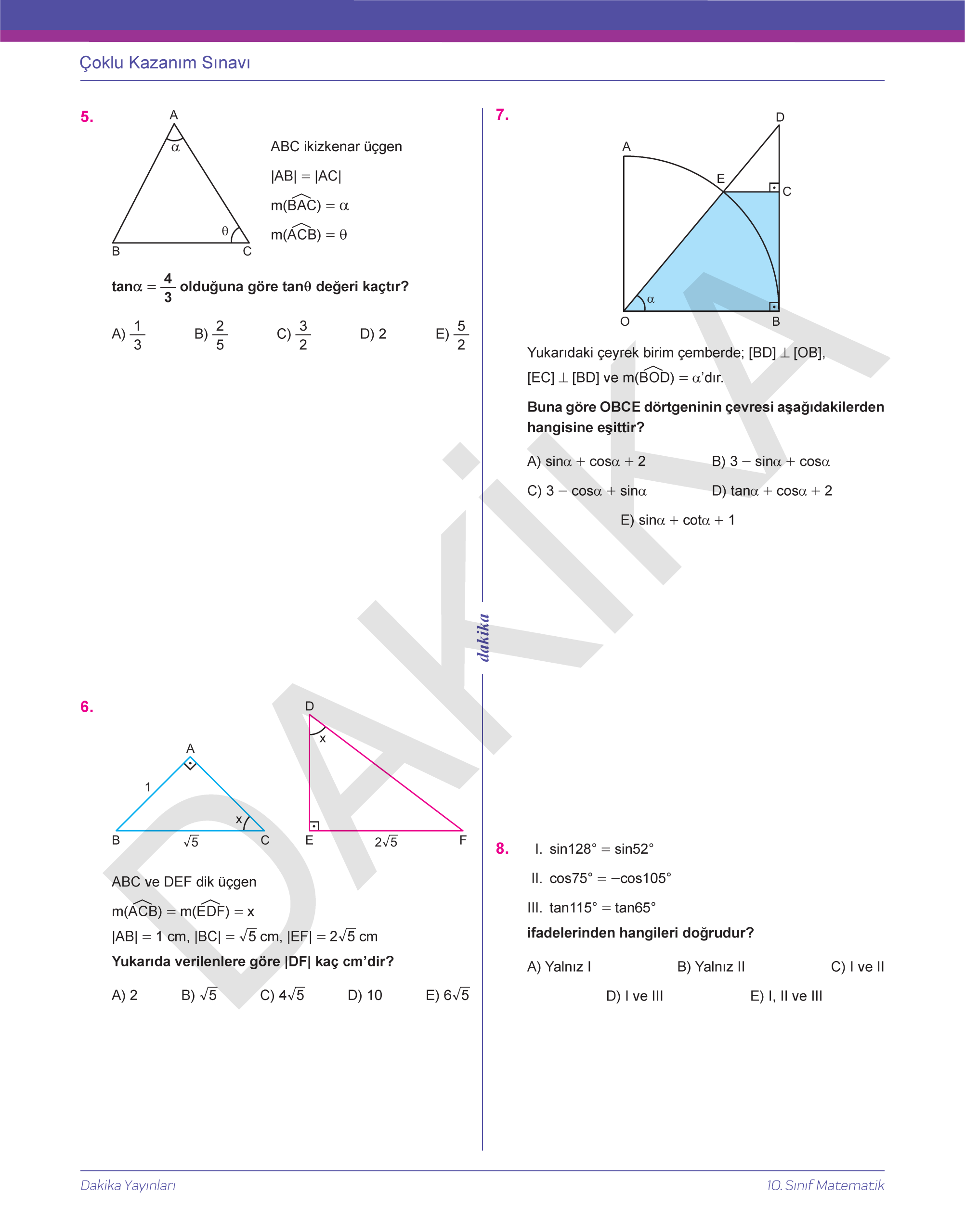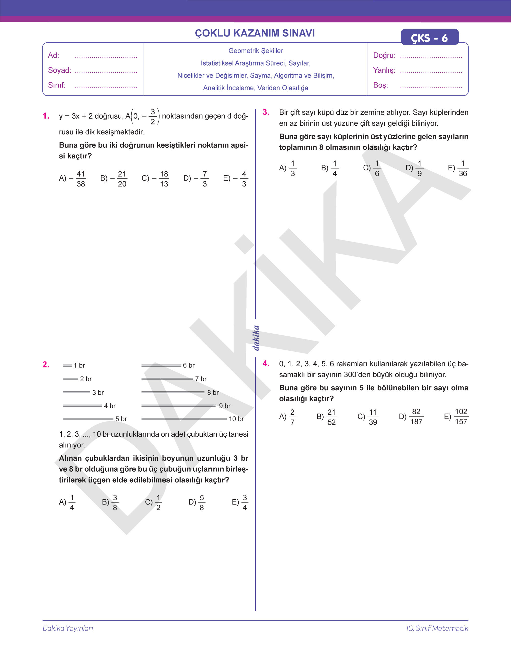 10. SINIF 20 DAKİKADA MATEMATİK YAPRAK TEST