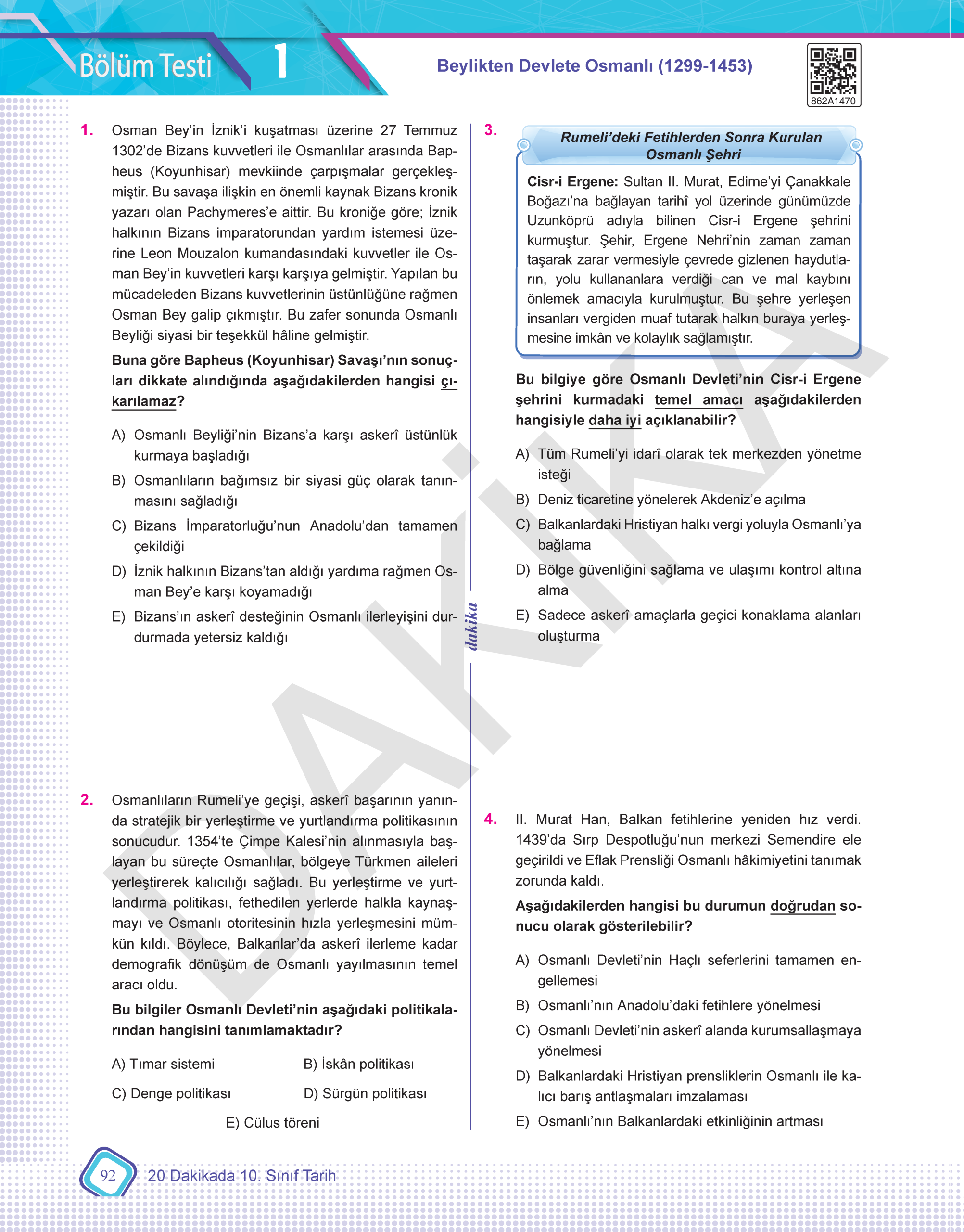 10. SINIF 20 DAKİKADA TARİH KURUMSAL SORU BANKASI