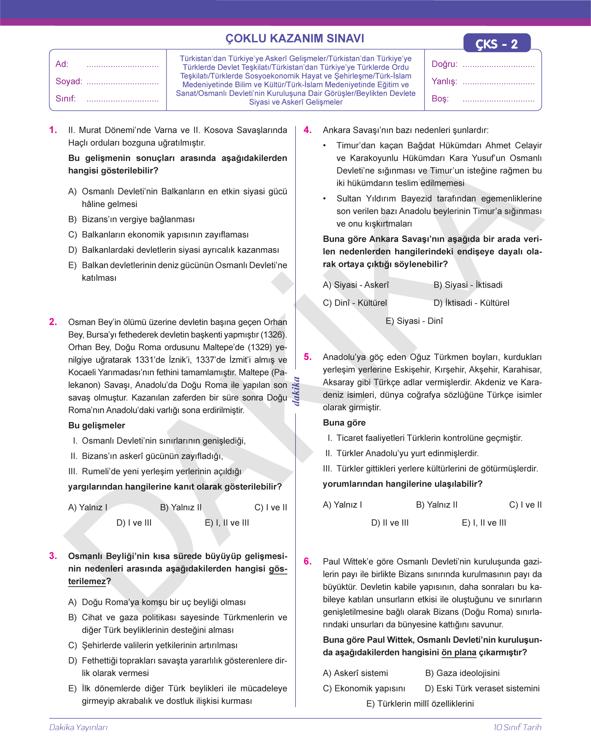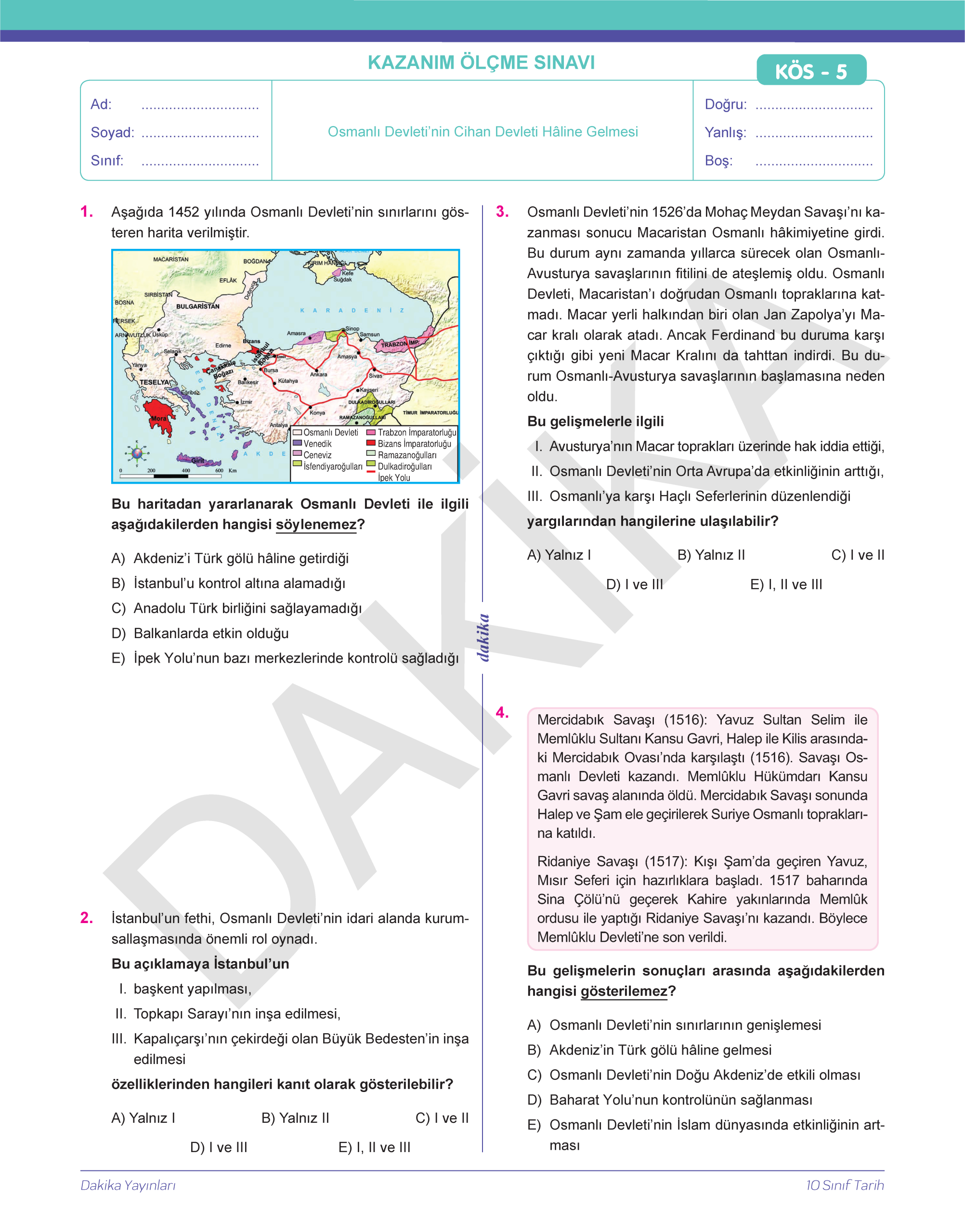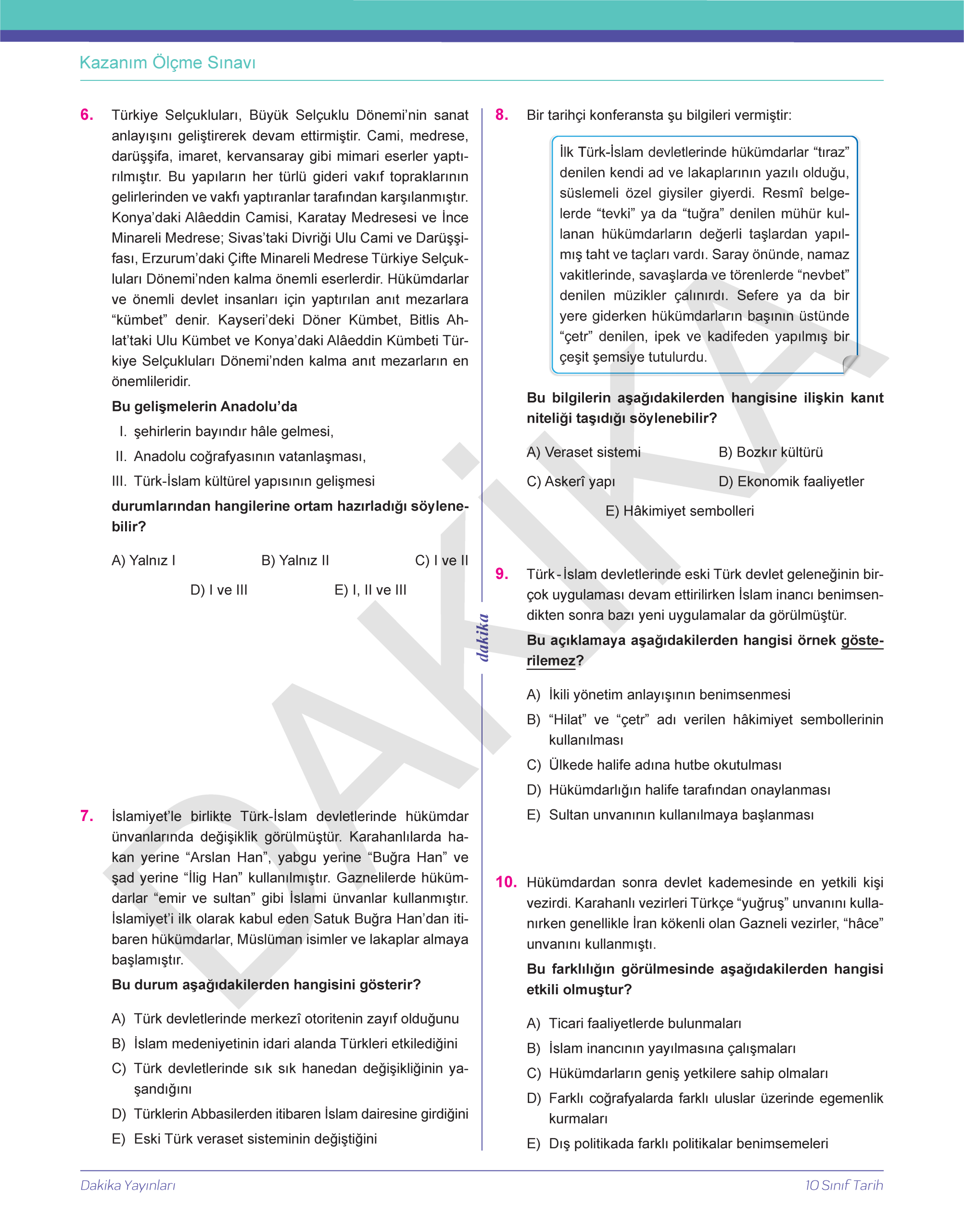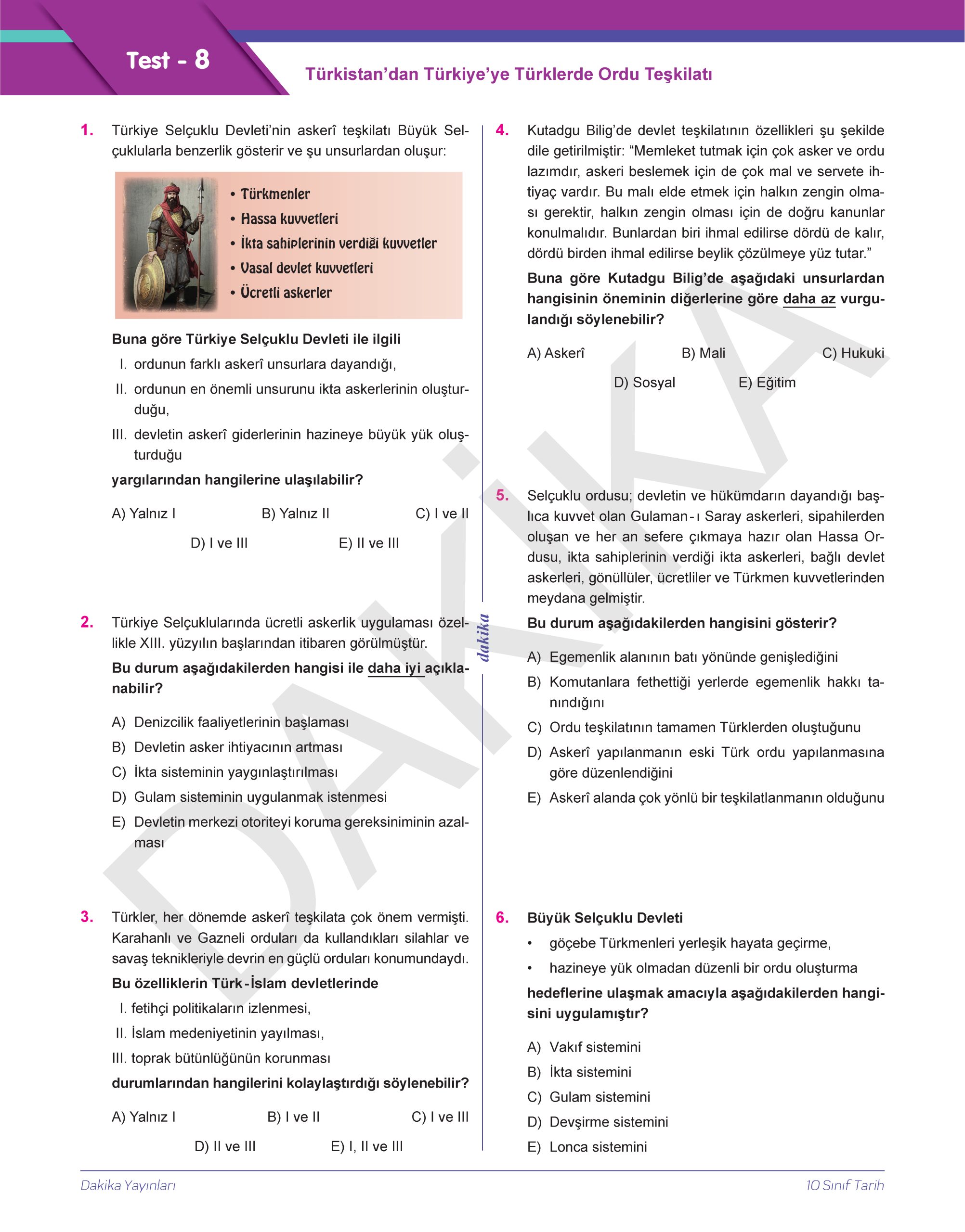 10. SINIF 20 DAKİKADA TARİH YAPRAK TEST