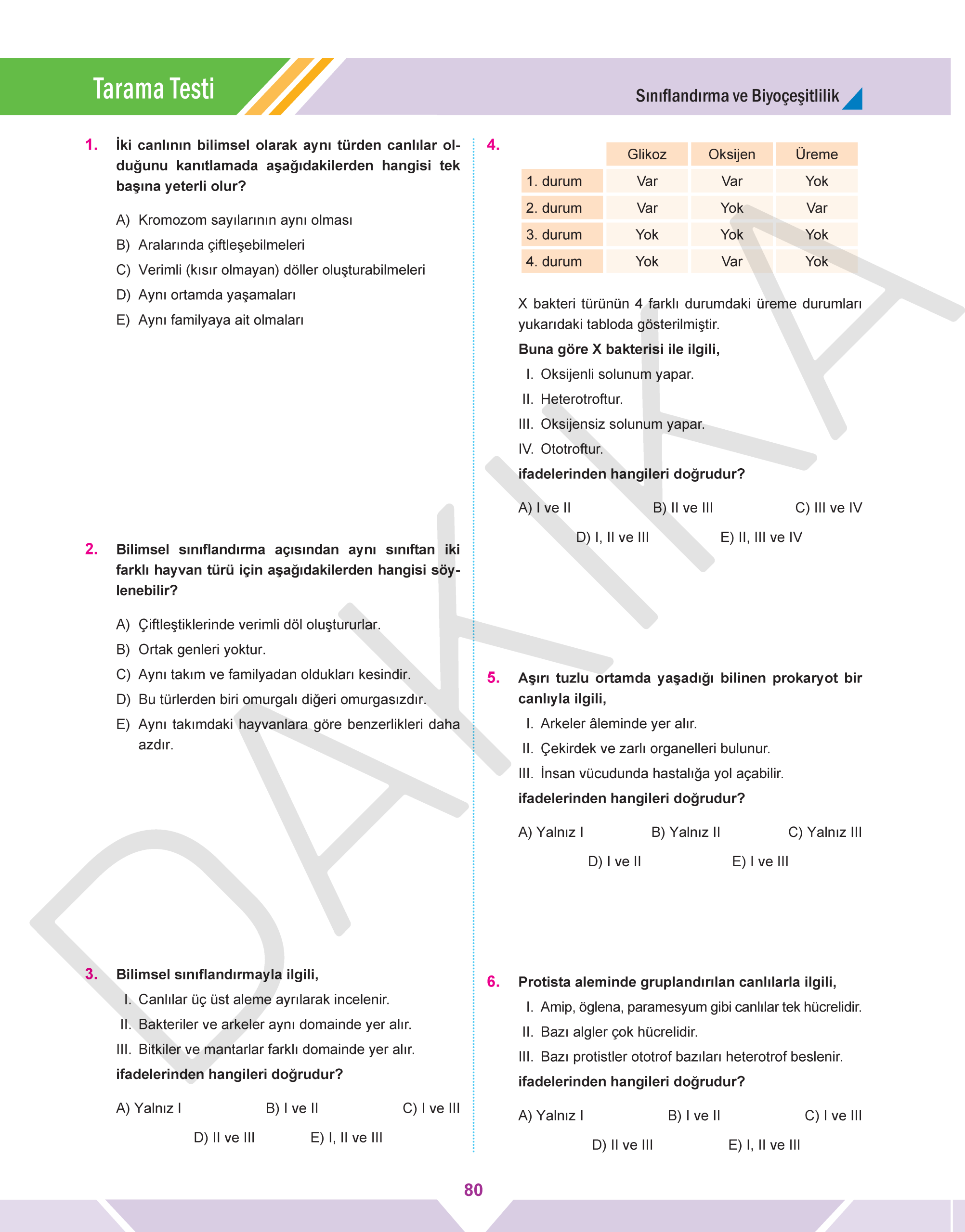 BÖLÜM 2: Sınıflandırma ve Biyoçeşitlilik