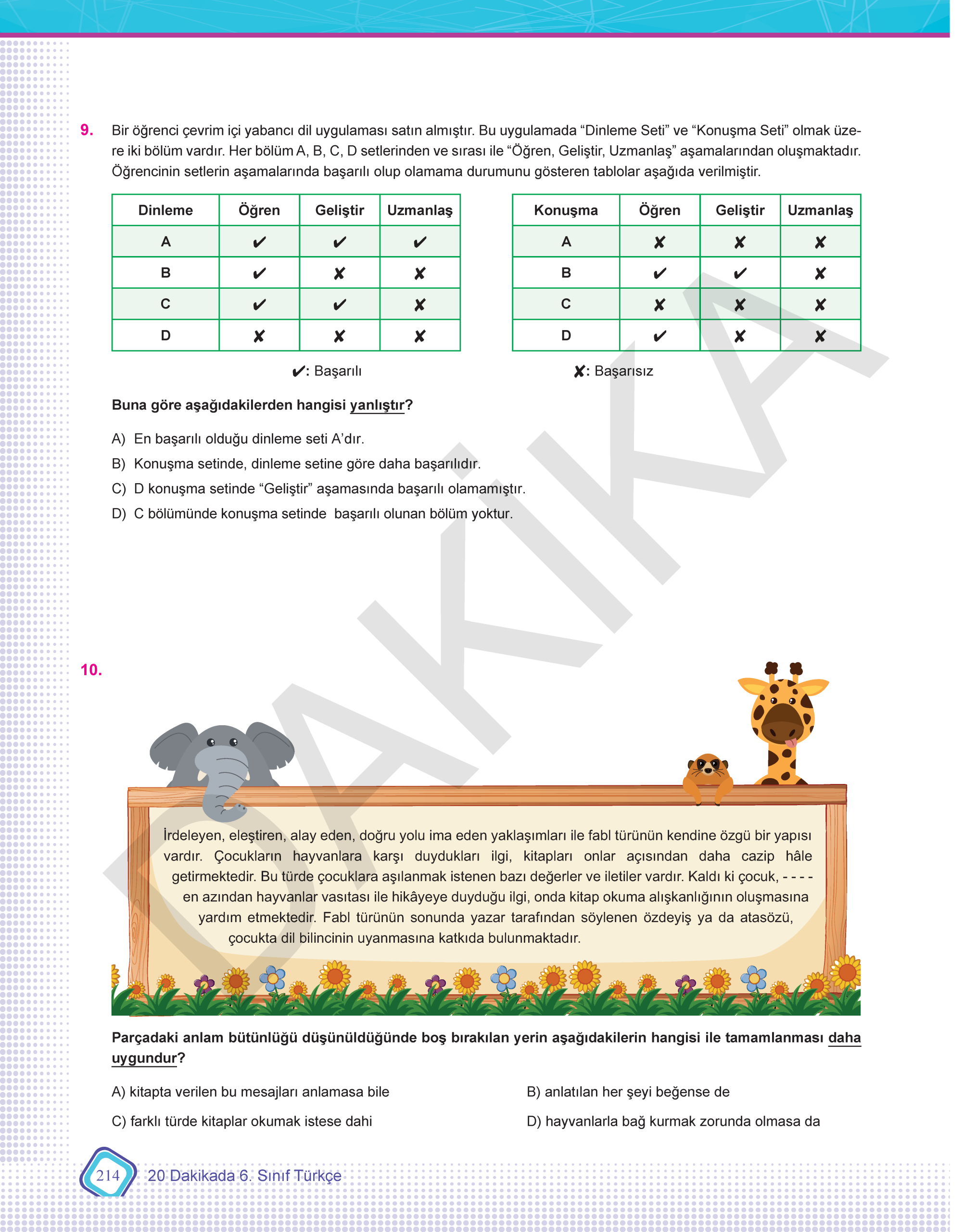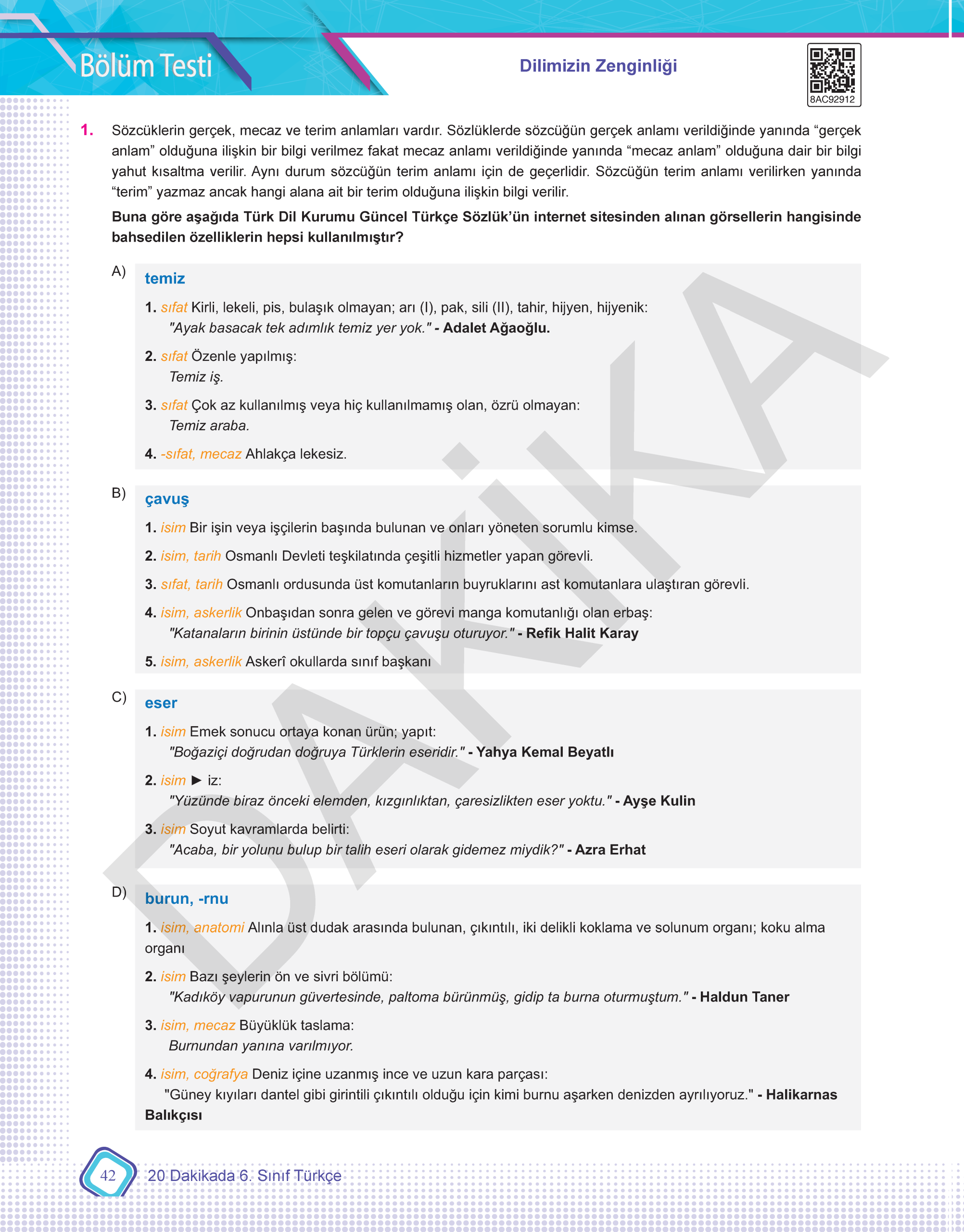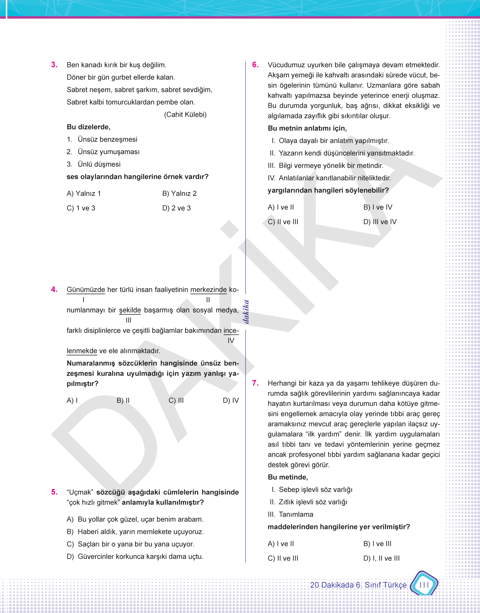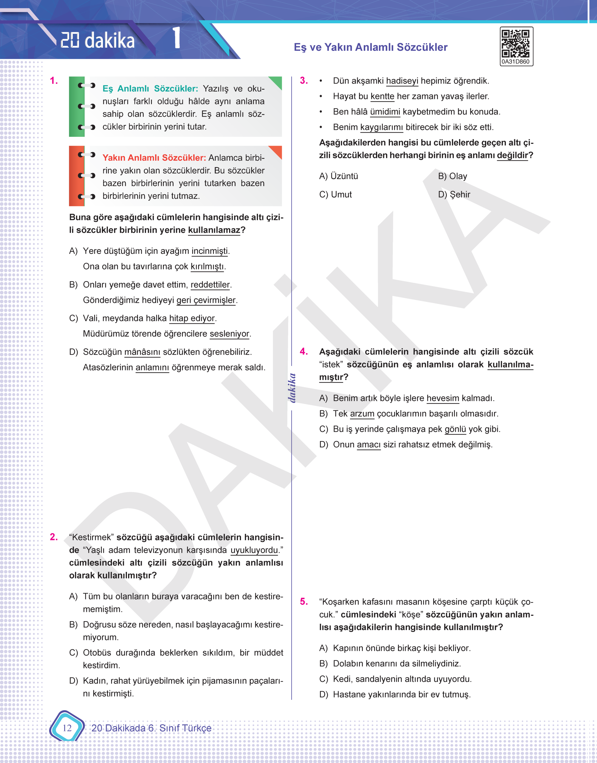 6. SINIF 20 DAKİKADA TÜRKÇE KURUMSAL SORU BANKASI